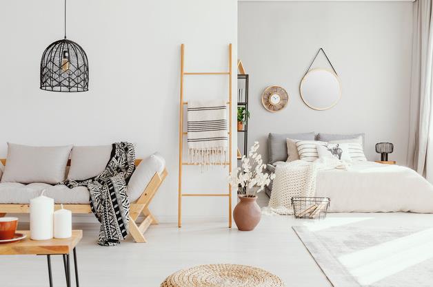 深色給人下墜感,淺色給人上升感。同純度的情況下,暖色較輕,冷色較重。使用深色系時,只涂刷一面墻是不錯的選擇,這樣會拉遠視覺空間,產生很強的縱深感。
